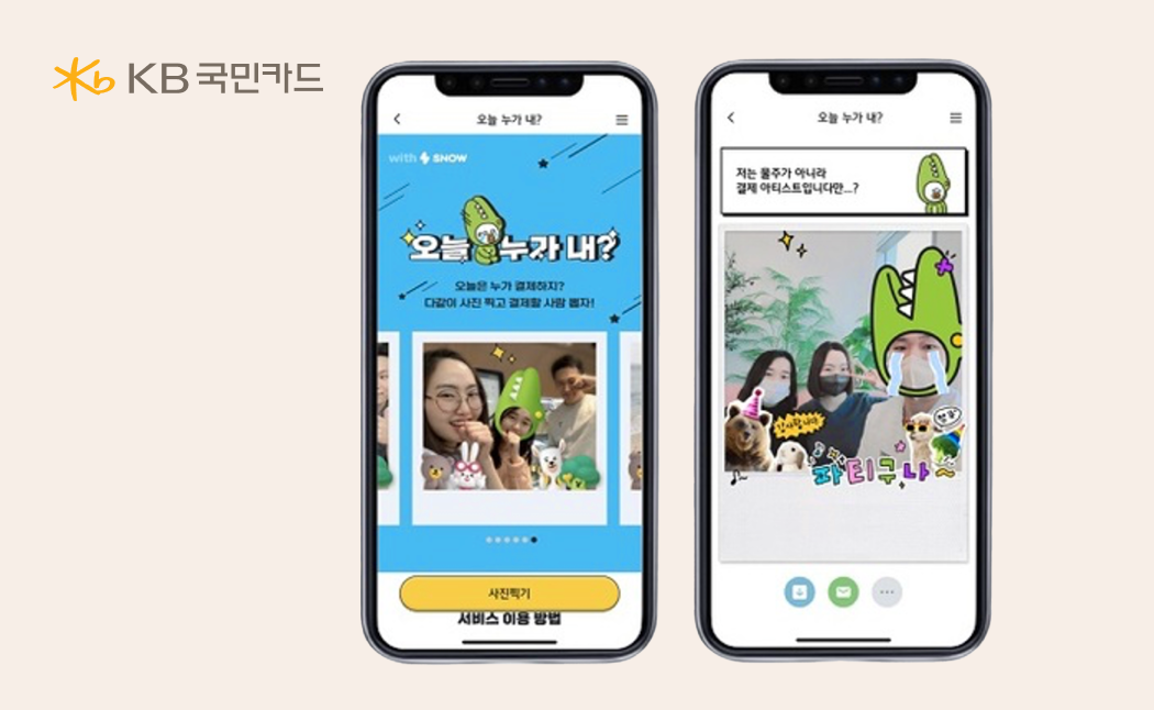 연동한 SNOW API 기능이 사용자가 업로드한 사진에 적용됩니다. 예시) 우리카드 앱으로 이동